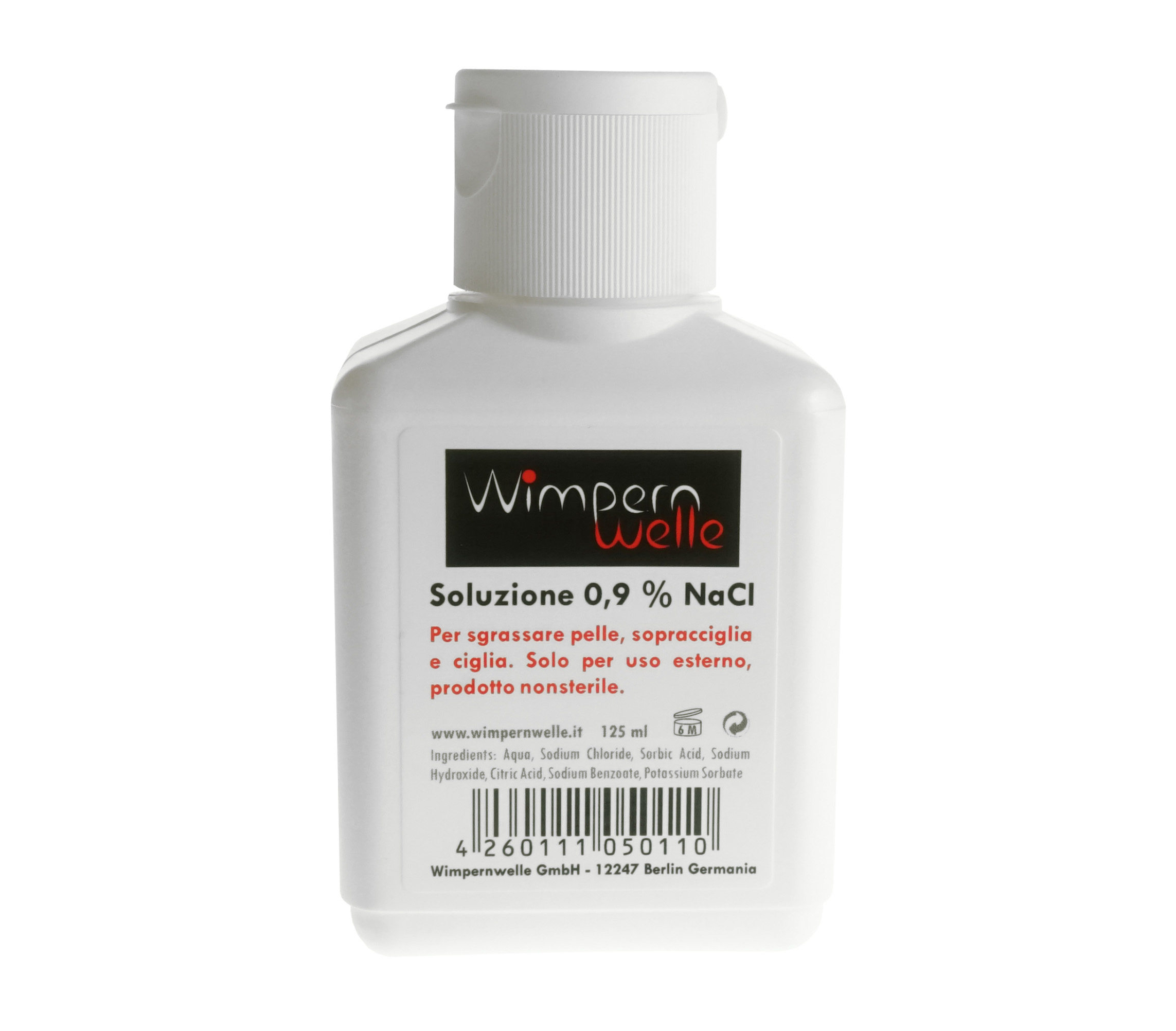 Soluzione fisiologica (Art. n° 10330) - per sgrassare la palpebra e le ciglia - obbligatorio prima di ogni trattamento.