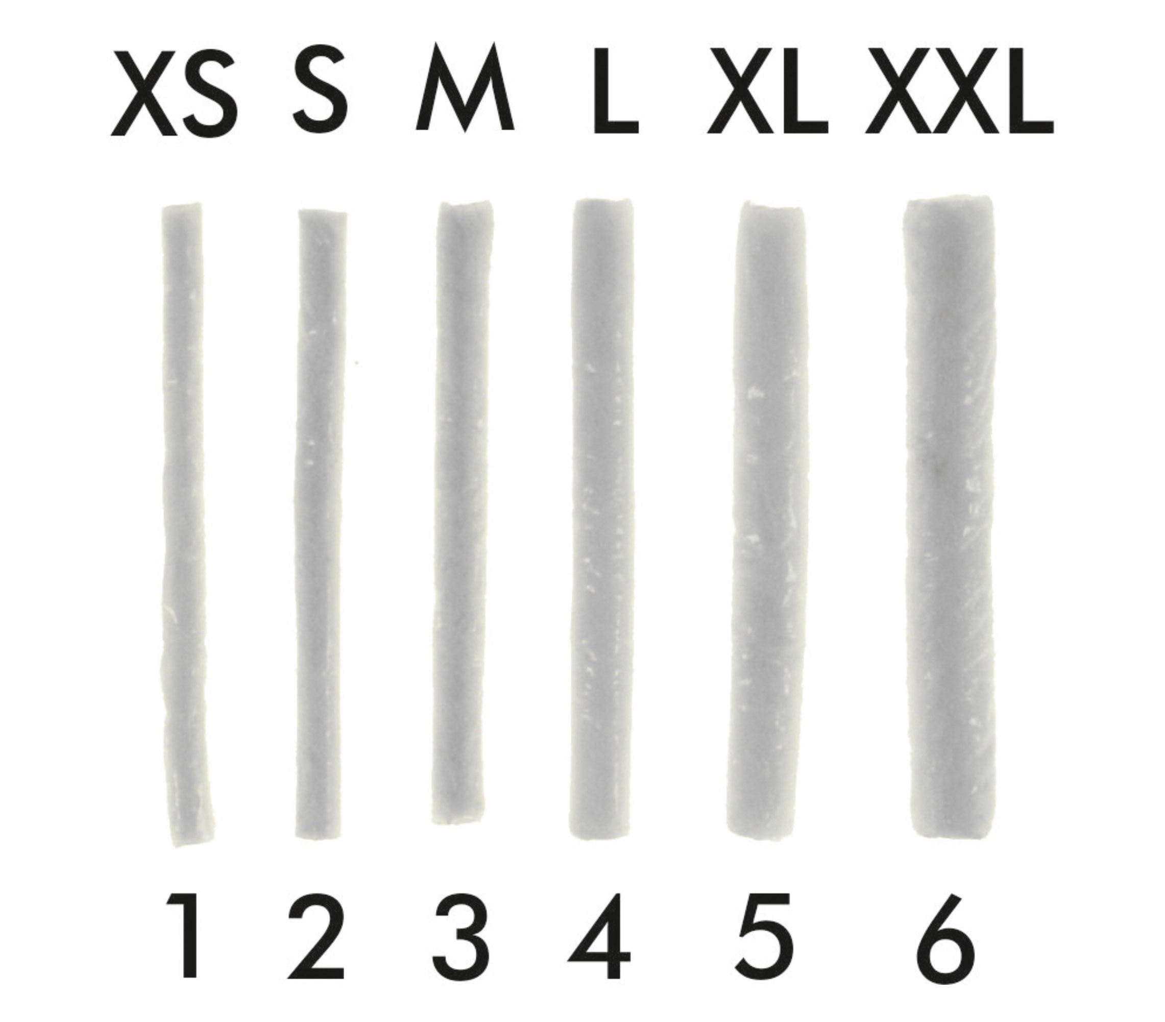 6 diverse misure: no. 1- XS, no. 2- S, no. 3- M, no. 4- L, no. 5- XL, no. 6- XXL