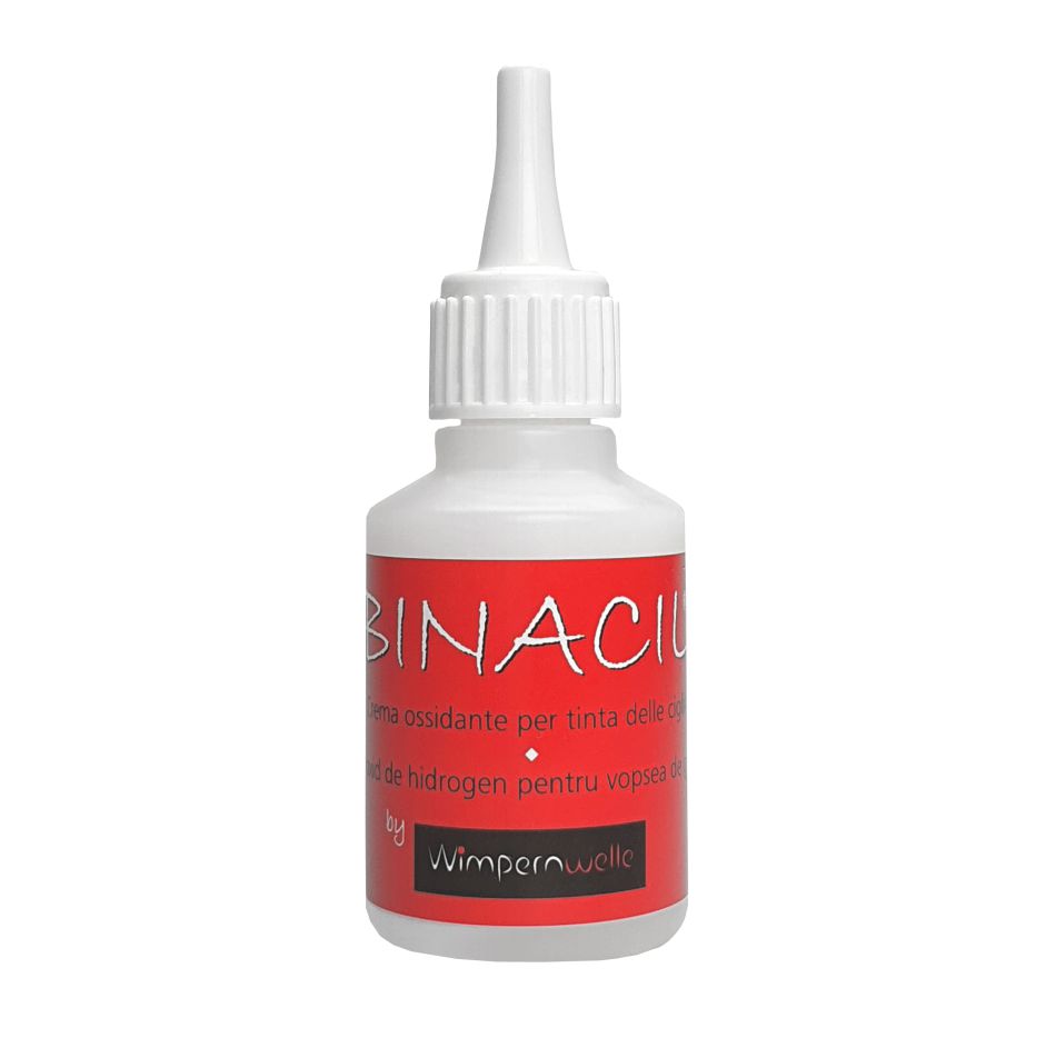 10 gocce di Crema Ossidante BINACIL® vengono miscelate con 2 cm di BINACIL® tinta per ciglia & sopracciglia ad una crema colorata all'1,5% ad es. sull'igenico e pulito blocchetto per miscelare BINACIL® (Art. N°. 23967).