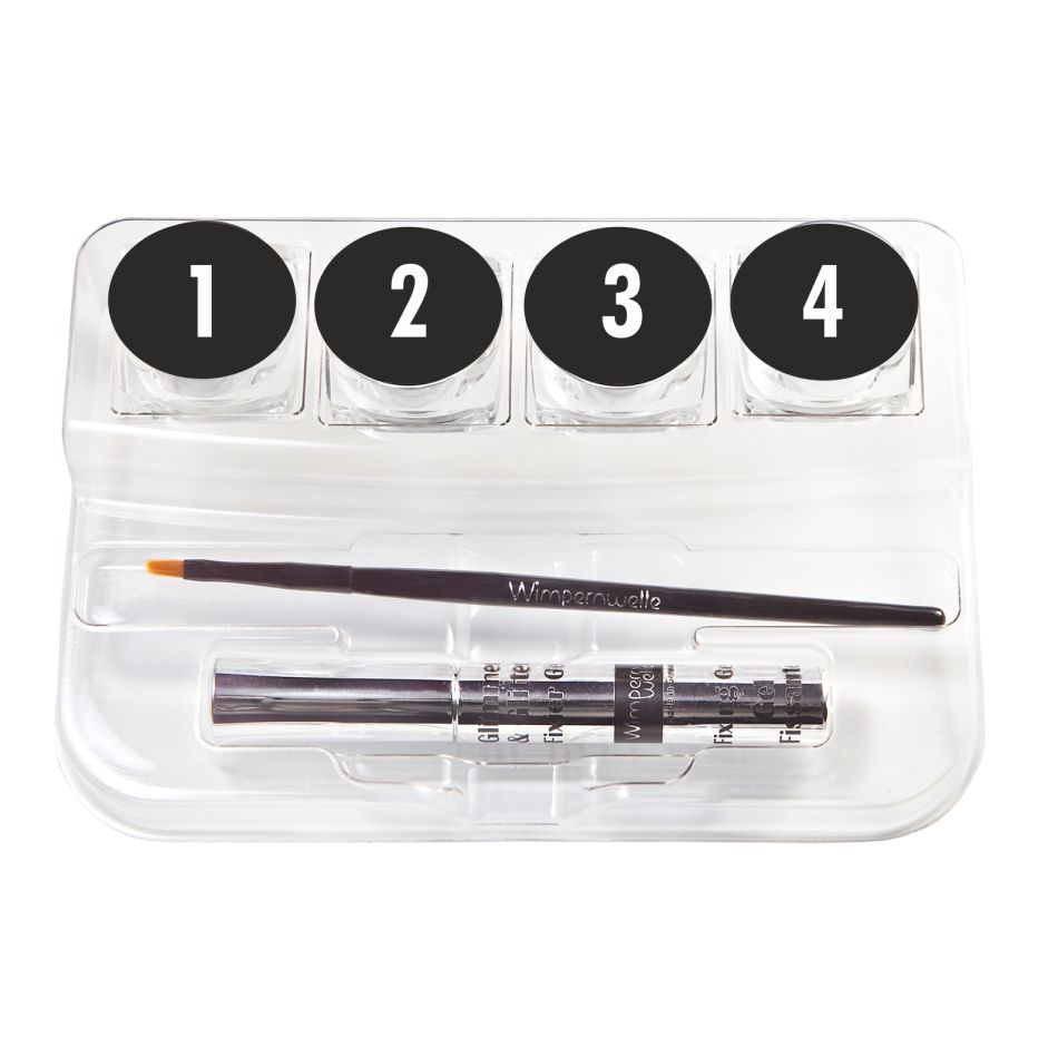 Glimmer & GlitterBAR avec 4 Fards à paupières de votre choix, Gel fixateur et Pinceau