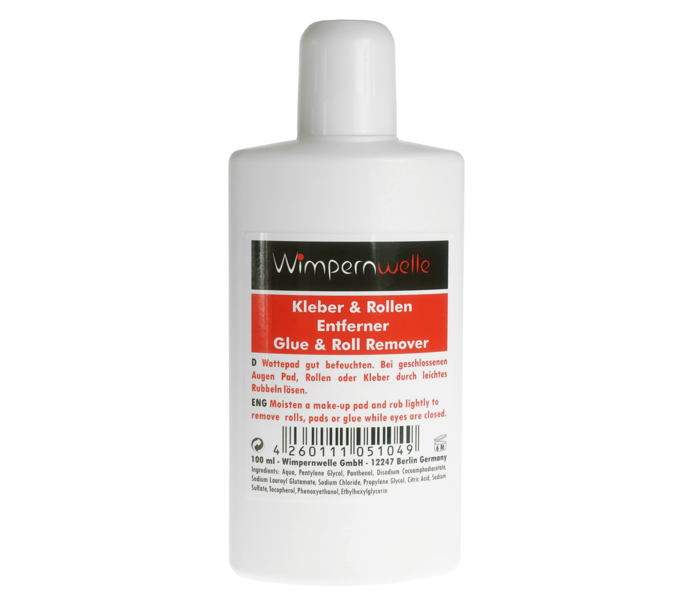 Zmywacz do klejów i wałeczków (Artykuł nr 10336) stosowany do łatwego i szybkiego usuwania specjalnego kleju i kleju POWER PAD® z rzęs a także podkładek po zabiegu.
